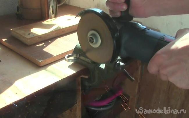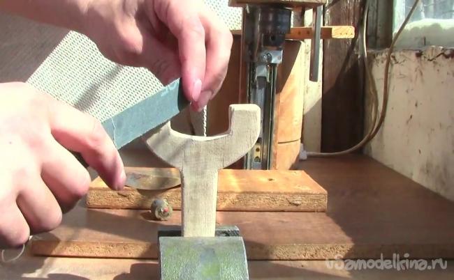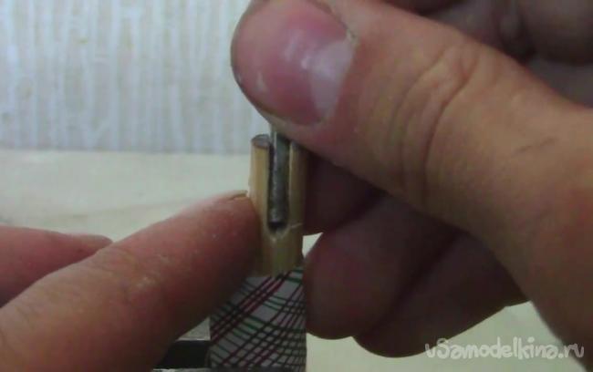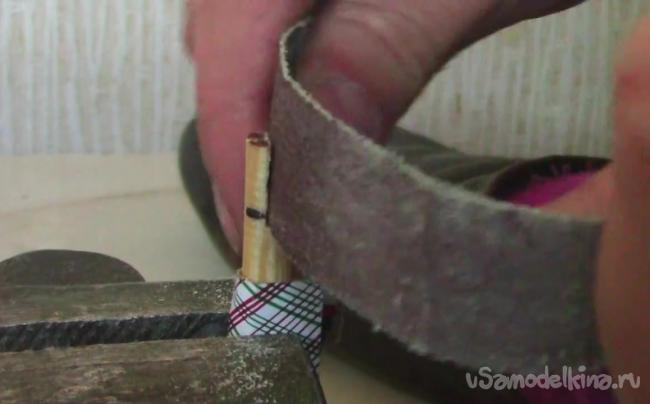 Расширяем распил наждачной бумагой так, чтобы туда входил наконечник.