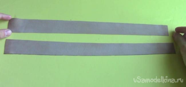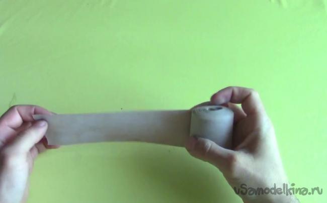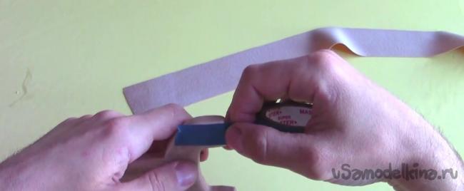 Следующим делом берем удобную резину, которую будем использовать при изготовлении. Автор использует самый обычный ленточный жгут. Из него нужно вырезать две тяжи. Их лучше делать конусообразной формы.