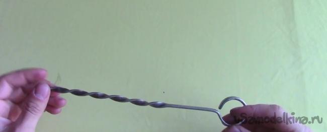 Стрелы также будут не совсем стандартными. Берем древку для стрелы и маленький металлический шампур, который подойдет для изготовления наконечника.