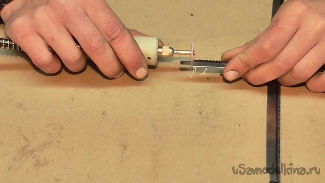 Вырезать пилочку удобнее всего бормашиной, поскольку она позволяет делать это точнее.