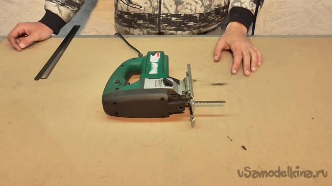 Заводская пилочка для электролобзика будет служить шаблоном, по которому будем изготавливать самодельную.