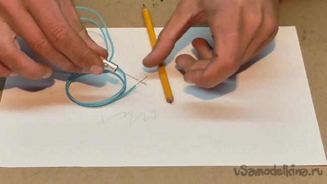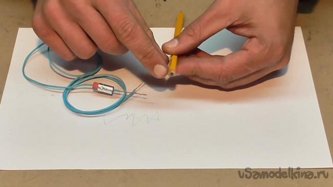 Также необходимо немного заострить карандаш в районе подключения провода, чтобы последний лучше соприкасался с графитом.