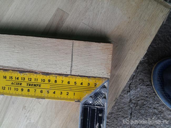 Первым шагом будет разметка нужной части паркета, для нашего брелка достаточно 5 см в высоту.