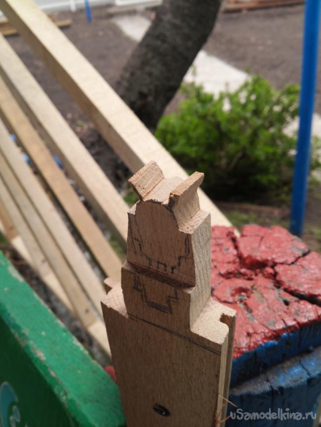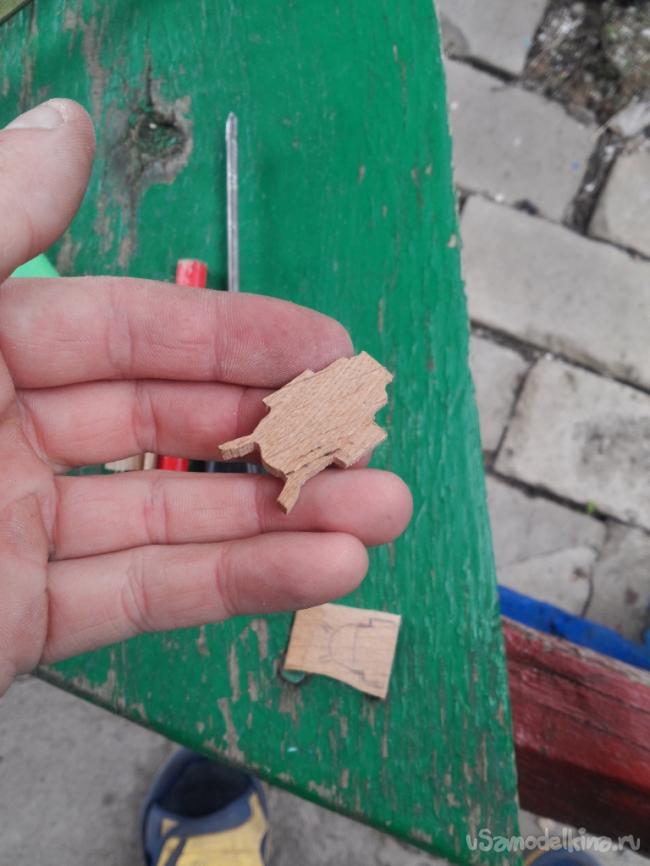 Первым что необходимо выпилить это лишние края перкета, так как его ширина многовата для столь маленького брелка.