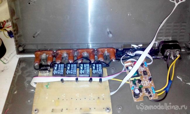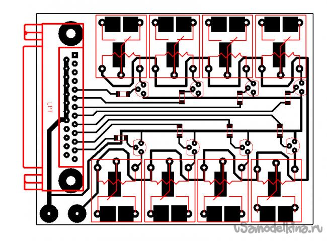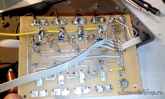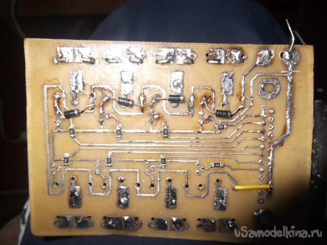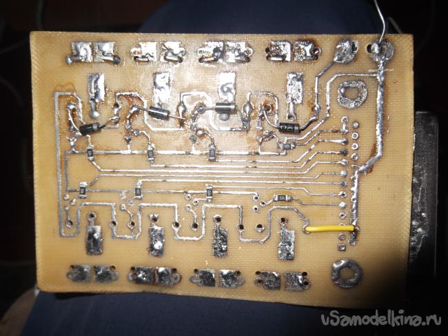 Далее впаиваем сверлим отверстия для реле и транзисторов и можно приступать к сборке.