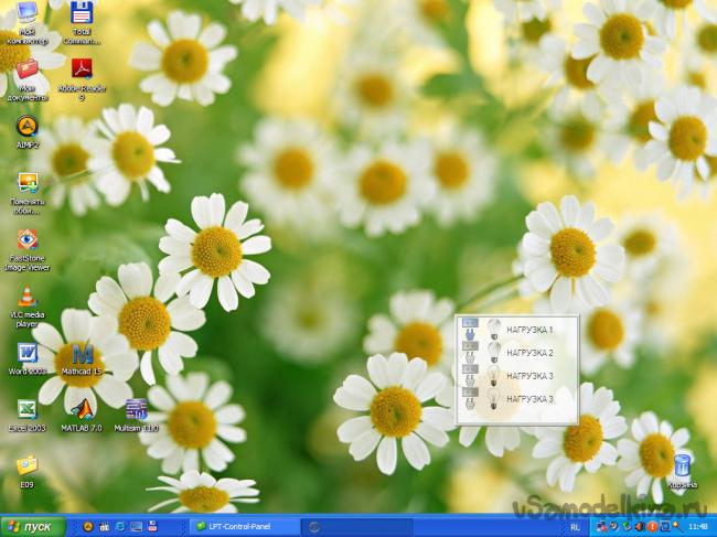 Видим окошечко в котором отображены нагрузки, если мы правильно собрали схему то когда мы будем мышкой щелкать на нужную нам нагрузку – соответствующая нагрузка будет включаться.