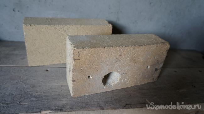 Перфоратором с буром для штрабления убираем образовавшуюся между сквозными отверстиями перегородку и получаем таким образом овальную по поперечному сечению, во всю длину кирпича камеру, куда будет помещаться заготовка для нагрева до необходимой температуры.