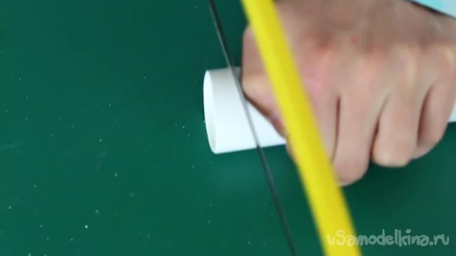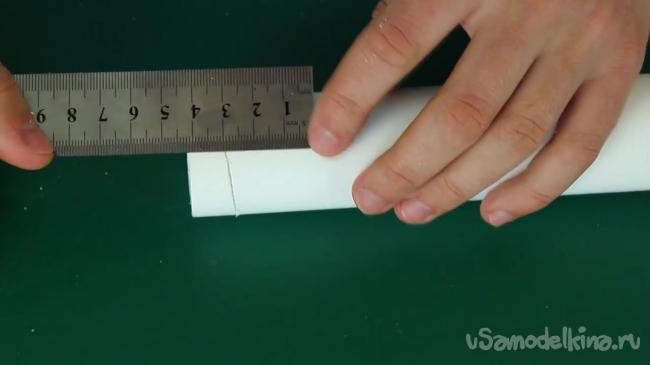 Отмеряем 20-25 мм от проделанного на предыдущем шаге надреза и отрезаем трубу.
