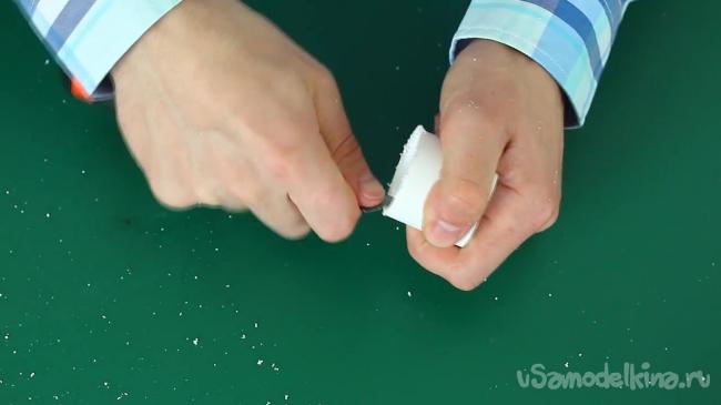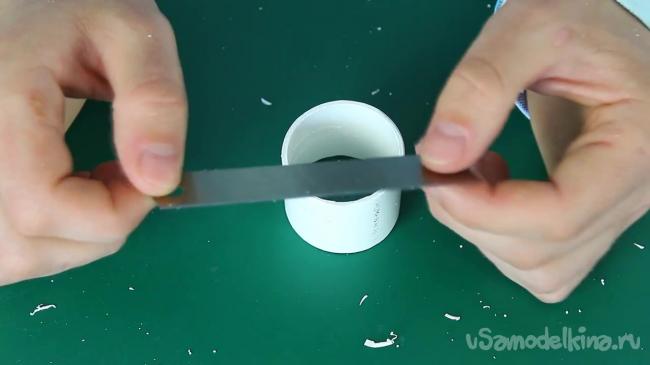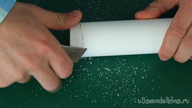 Снова обрабатываем место надреза при помощи того же канцелярского ножа.