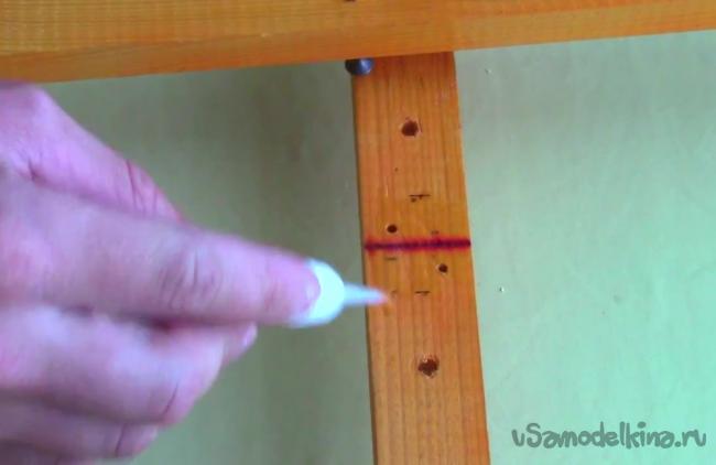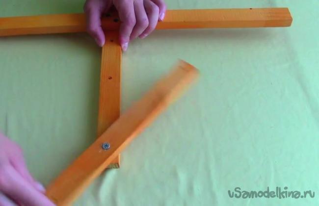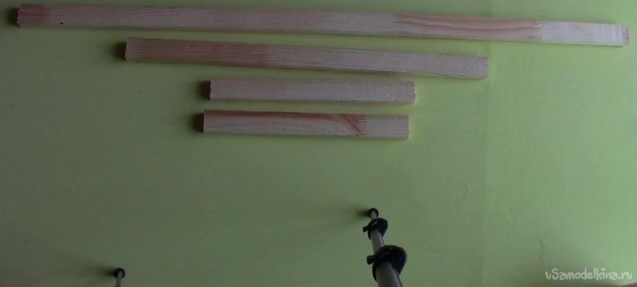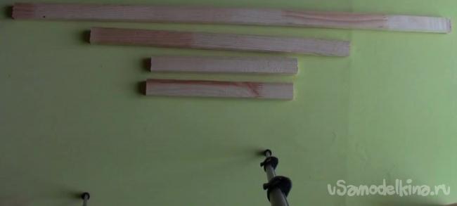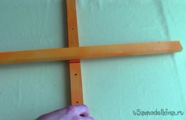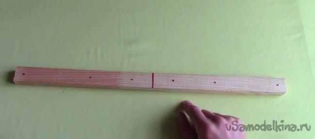 Деревянную планку нужно поделить на четыре части, чтобы получить два отрезка длиной по 30 см, один – 50 см и еще одну – 80 см.