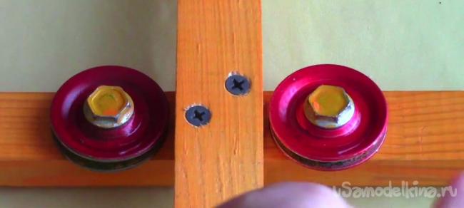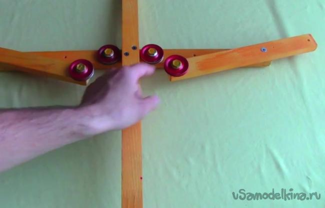 Следующим шагом берем ролики и фиксируем их на средней планке и на плечах лука.