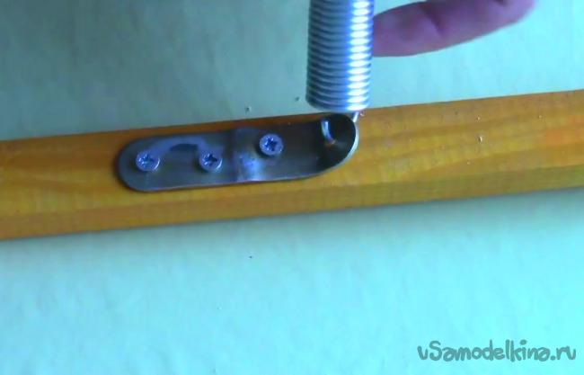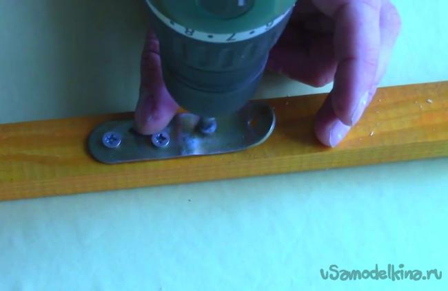 Переворачиваем конструкцию и на длинной планке закрепляем стальную пластину при помощи саморезов.