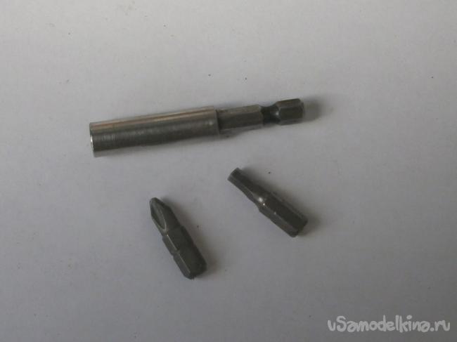 крестовая и шестигранная бита, а также удлинитель для их быстрой смены,