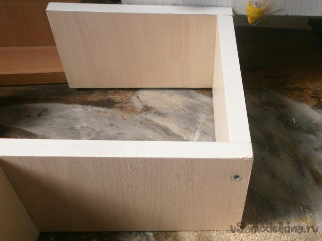 Делаем три Г-образных детали, скрепляя куски ДСП конфирматом.