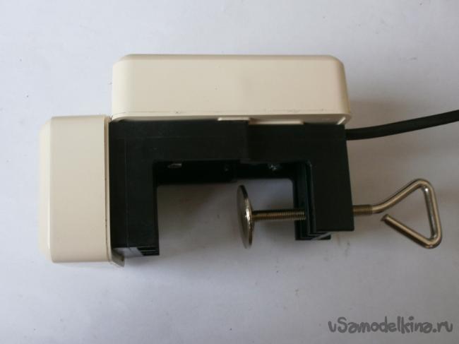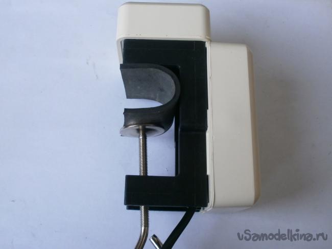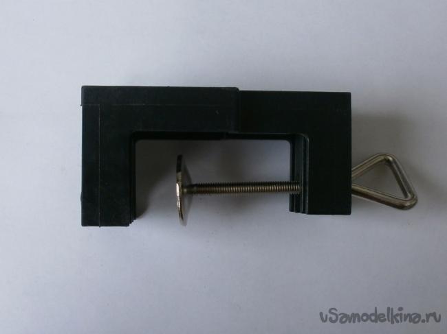 А вот струбцину (пластиковую, для крепления гибкого вала бормашинки), я попросту нашёл у себя «в закромах». Такой себе «рояль в кустах», так что покупать её не пришлось. Хотя как показала потом практика, найти и купить подобное совсем не сложно, и в изобилии есть на строительных рынках и в супермаркетах нечто подобное.