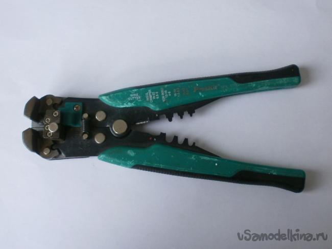 и электромонтажные щипцы, или как их ещё называют стриппер для укорачивания проводов и зачистки изоляции.