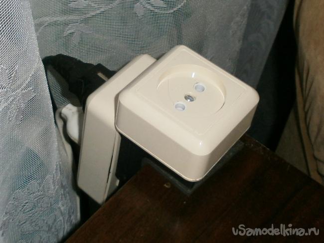 Прикручиваем его к столу, вставляем в розетку (в моём случае она за шторой, и регулярно отодвигать её, подключая сканер или зарядное устройство от телефона или планшетного компьютера – не лучшее решение). А в розетки удлинителя включаем то, для чего он, собственно, и предназначался.