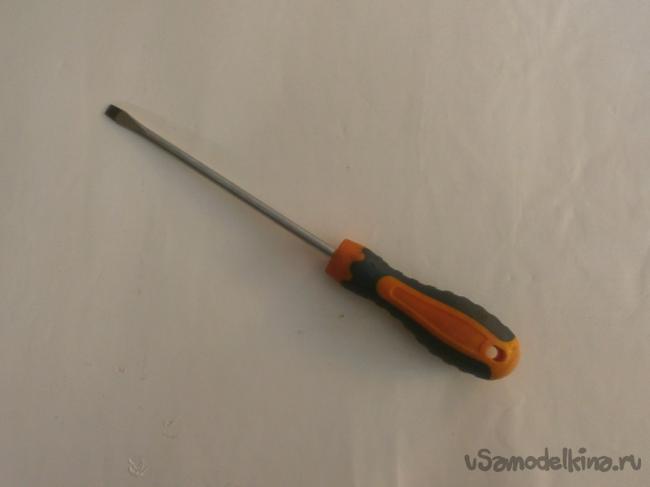 и опора для крышки. На эту «роль» прекрасно подходит плоская мощная отвёртка с длинным жалом.