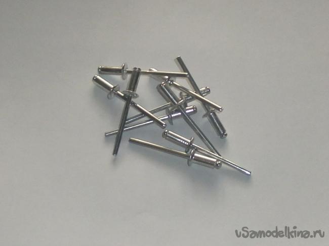 и десять клёпок, диаметром 4,8 мм и длиной 10 мм. Хотя если его нет в хозяйстве – не беда. Вы с успехом замените этот вариант метизов винтами М4 … М5 и гайками.