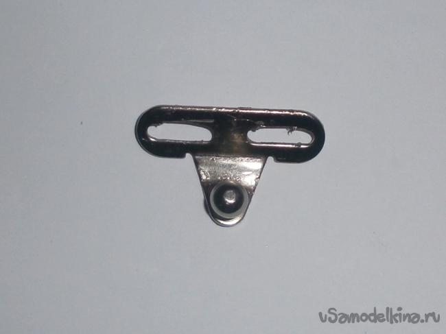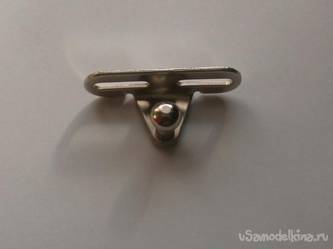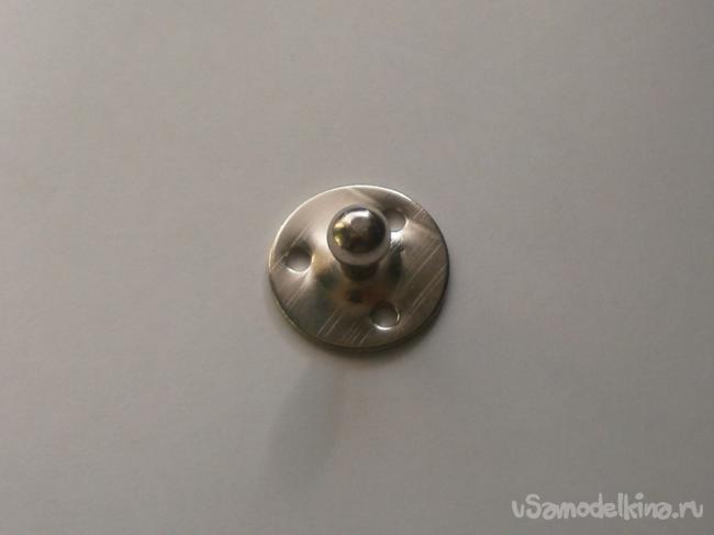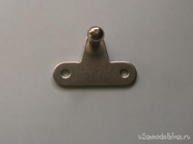 и на клёпках к центру крепите круглый шарнир. Кстати сами штатные отверстия шарниров тоже нужно рассверлить, или клёпки и само сверло взять потоньше.