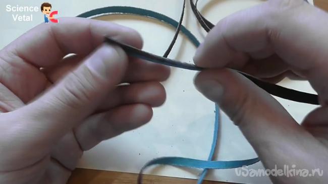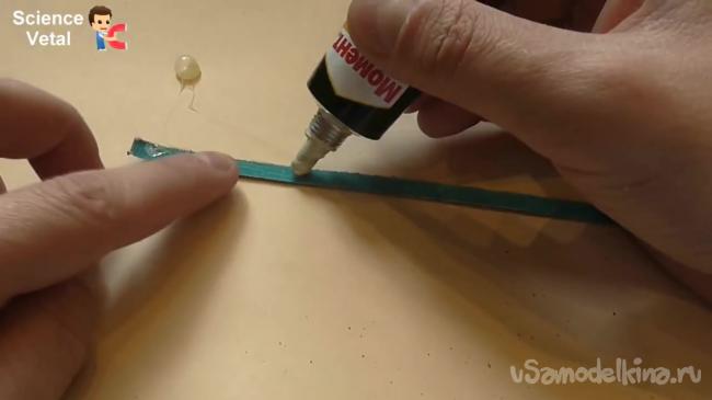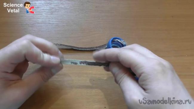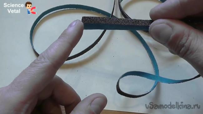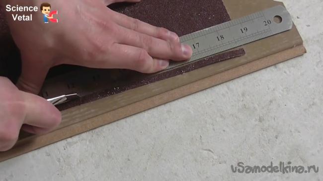 Теперь следует отрезать два кусочка наждачной бумаги шириной 0.5 см и длиной 1 м.