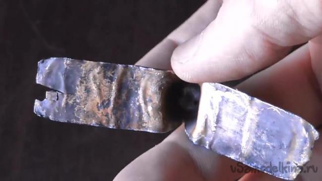 Место, где должны соединиться две половины гильзы, можно спаять обычным припоем.