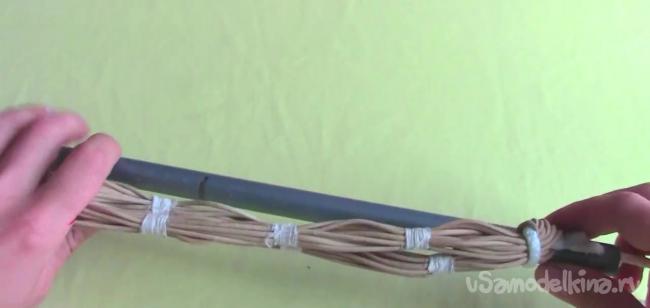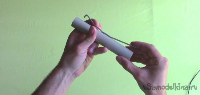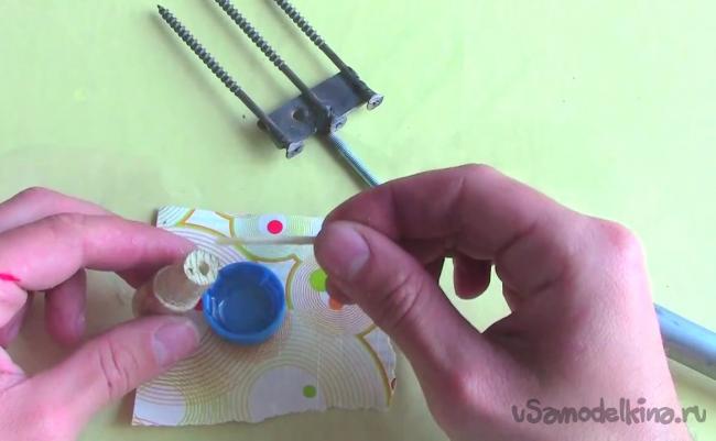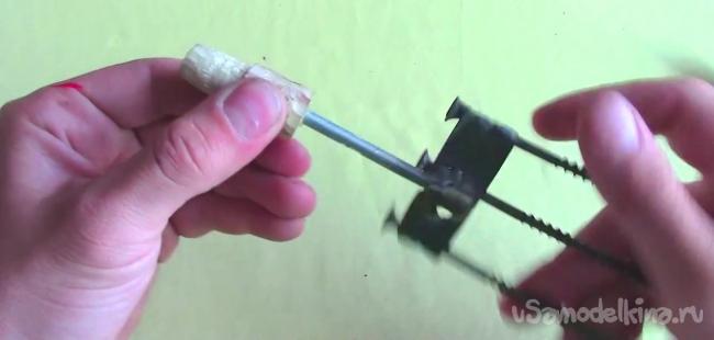Далее укрепляем куском резины и вставляем металлическую заготовку, которую сделали из шампура.