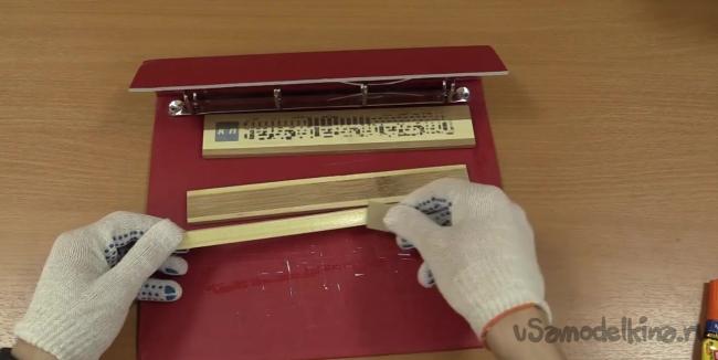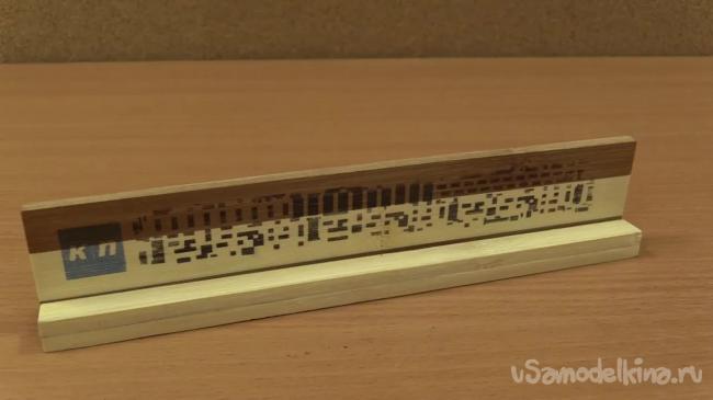 Приступим к сборке календаря. К подставке приклеиваем самую тонкую дощечку, которая будет служить держателем ползунка.