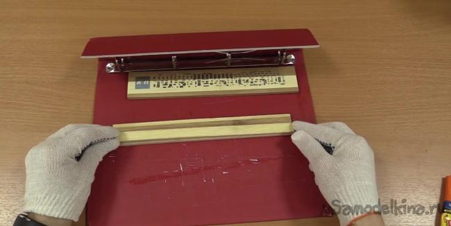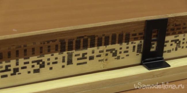 Дощечку с рисунком нужно приклеить к подставке на расстоянии 1.5-2 мм от держателя для ползунка. Этого расстояния вполне достаточно для свободного перемещения ползунка.