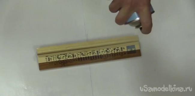 Следующим делом нужно нанести изображение на дощечку. Для этого наносим полоску скотча на лист бумаги и на струйном принтере распечатываем зеркальное изображение календаря.