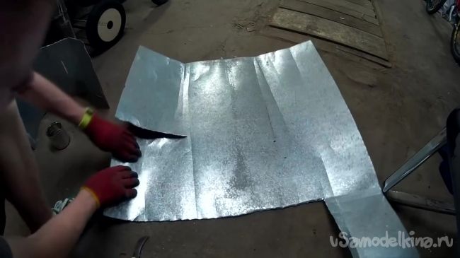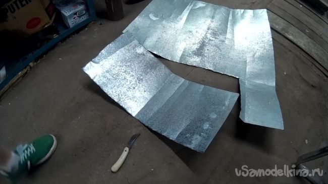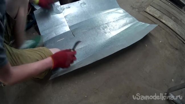 Из листового металла нужно вырезать две полоски. Первая полоска должна быть чуть больше второй.