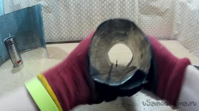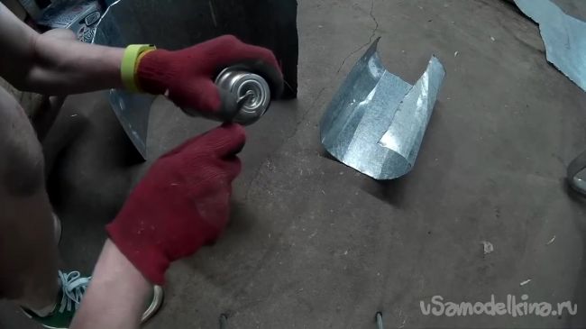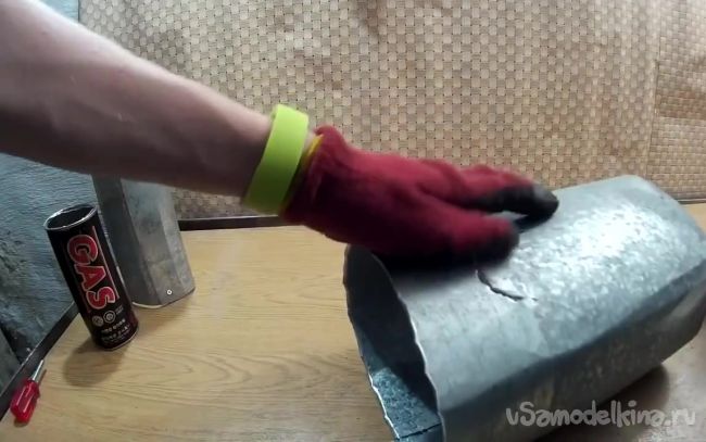 Основную часть, в которую можно будет класть дрова можно сделать из пустого баллончика. Не забудьте предварительно выпустить остаток газа или краски, чтобы баллончик не взорвался в ходе работы. Все что нужно сделать, это вырезать верхнюю и нижнюю части баллончика, получив таким образом трубку.