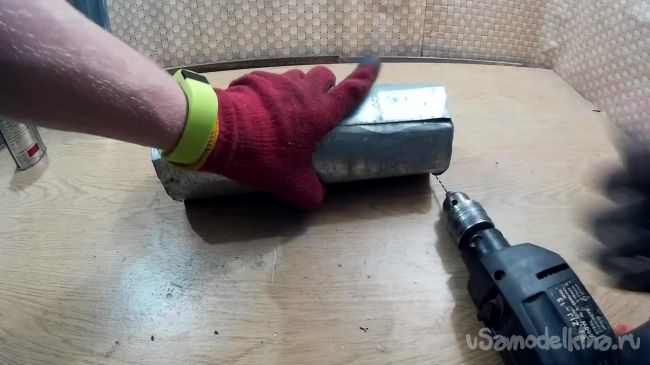 Проделываем на каждом цилиндре два отверстия при помощи дрели или шуруповерта.