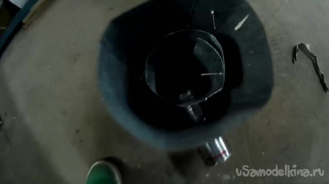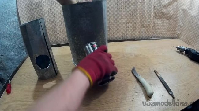 С боку большого цилиндра нужно проделать отверстие под баллончик.
