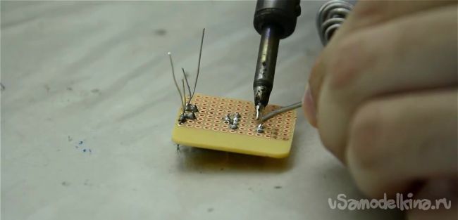 Начать следует с монтажной платы. Вырезаем небольшой кусок шириной 9 точек и длиной 13.