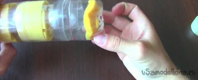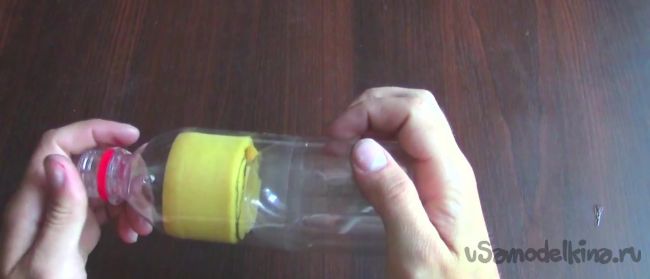 Далее берем поролон и наматываем его на короткое горлышко бутылки. По словам автора идеи, очень важно использовать именно поролон, чтобы получить лучший эффект.
