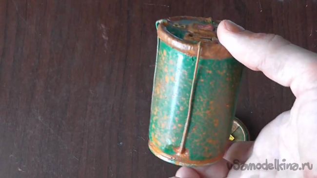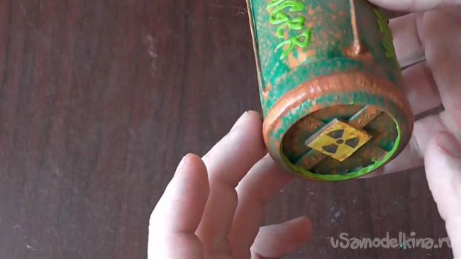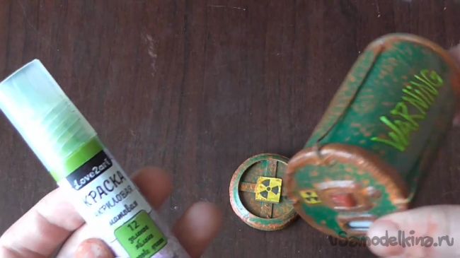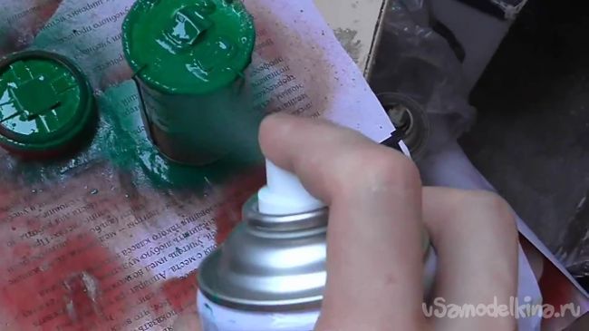 Далее красим баллончик аэрозольной краской зеленого цвета.