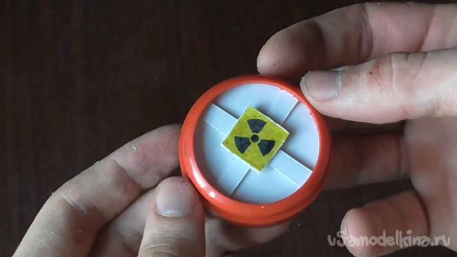Приклеиваем круглую деталь к баллончику, поместив все компоненты внутри.