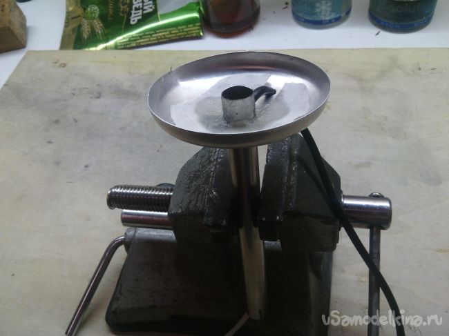 просверливаем отверстие в середине для трубки