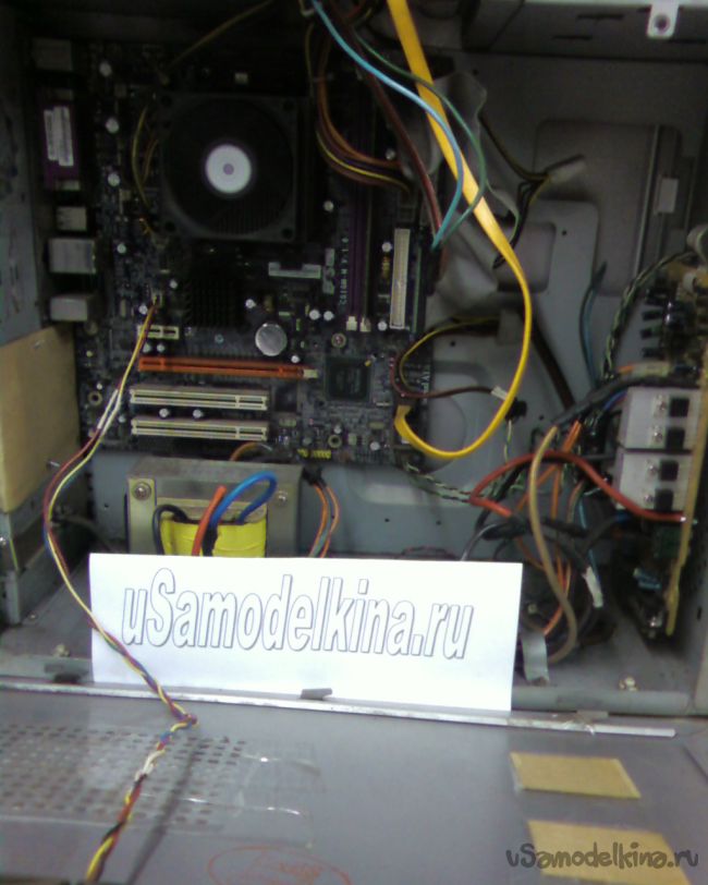 Трансформатор я установил в задней нижней части корпуса и не просто так. (для этого пришлось долго искать дополнительные куски силового провода). Дело в том что у меня были опасения, что электромагнитное поле трансформатора может негативно повлиять на работу винчестера, вплоть до выхода того из строя. Поэтому решил расположить этих двух неприятелей на максимально возможном друг от друга расстоянии, по диагонали системника. Винчестер я закрепил в отсеке для CD-ROMa.