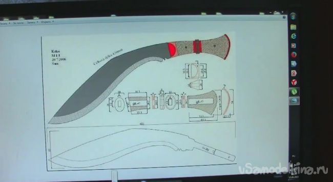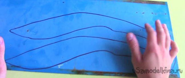 Далее берем стальную пластину и переносим на не рисунок ножа в двух экземплярах.
