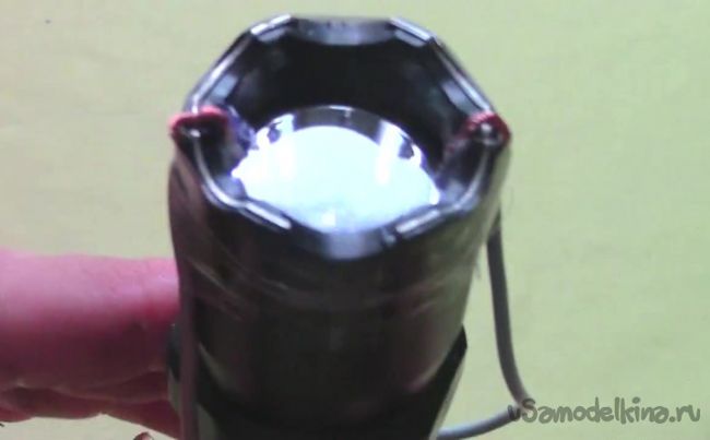 Далее берем любой электрошокер и фиксируем два провода на стальных деталях, через которые идет разряд.
