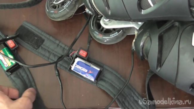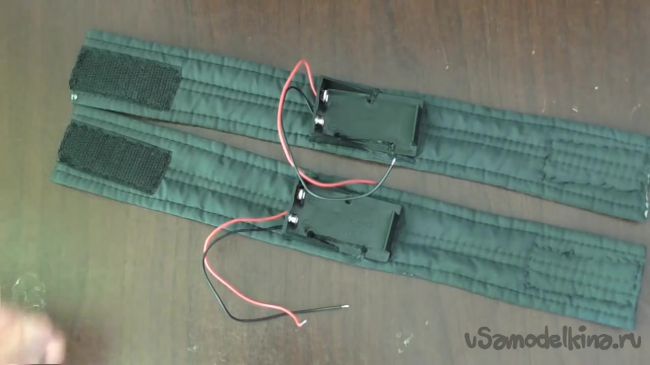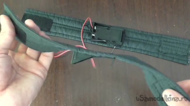 Первым делом нужно позаботиться о креплении коробок для батареек к ноге. Для этого можно использовать мягкий пояс, который можно приобрести на рынке. К ремню нужно пришить коробки.