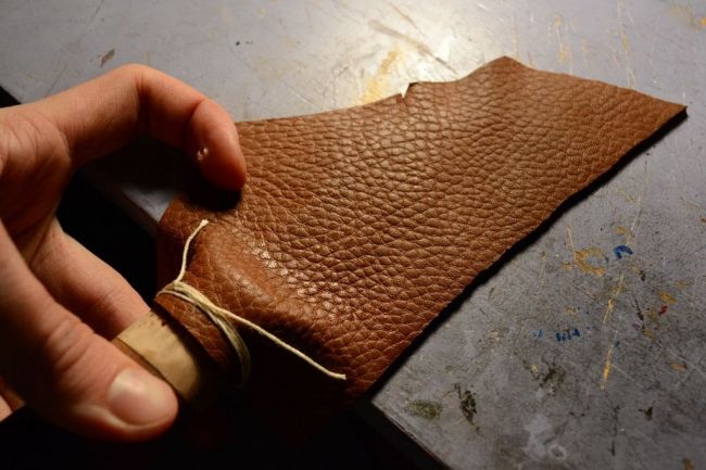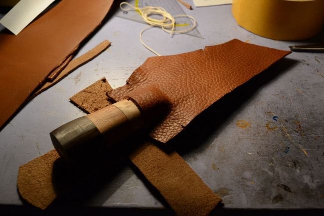 Шаг 4: Для того чтобы чехол держал форму в местах рукоятки, кожу зафиксируем веревкой.