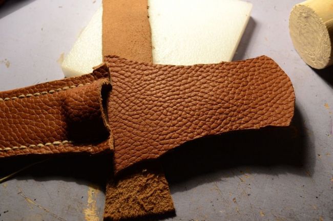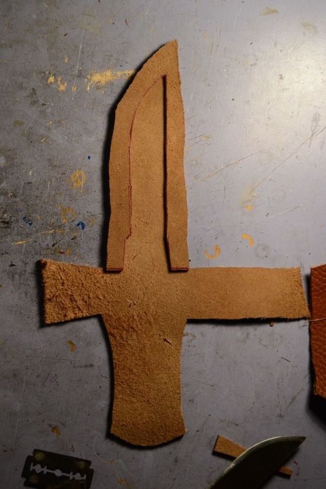 Шаг 8: Далее в местах рукоятки из кожи сделаем лицевое оформление.