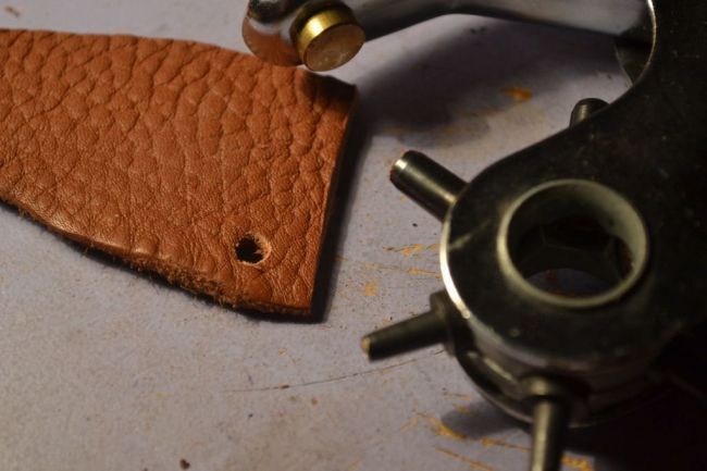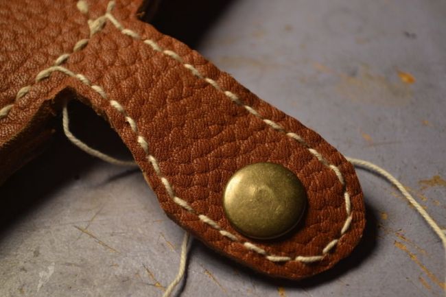 Шаг 11: Далее сделаем заклепку для чехла. Для этого делаем отверстие закрепляем заклепку и прошиваем.