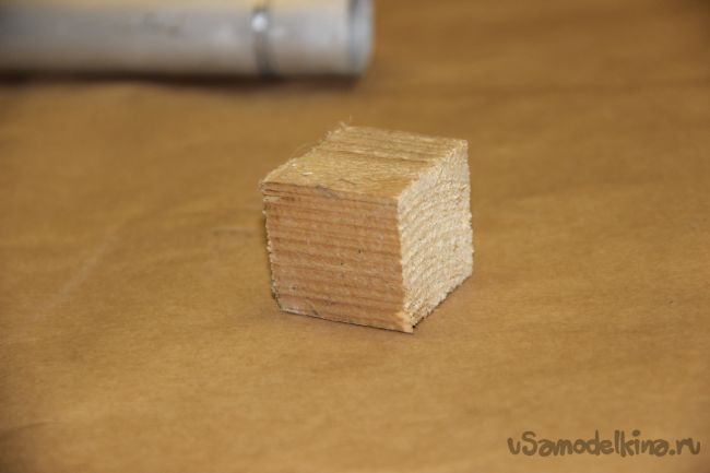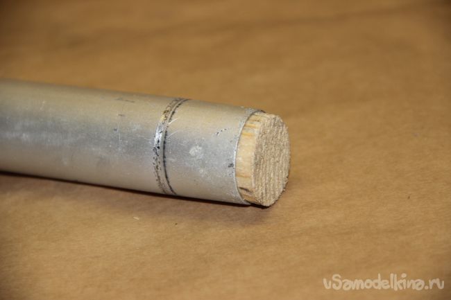 Шаг 2: Далее берём небольшой брусочек и делаем его цилиндрический формы, диаметр его должен совпадать с внутренним диаметром трубки. Это будет крышка нашей поводочницы. Крышка должна вставляться в трубку туго.