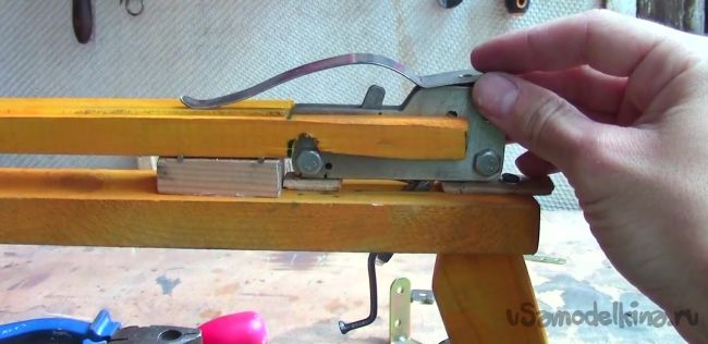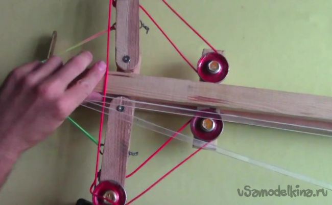 Можно приступить к спусковому механизму. Для этого одеваем тетиву и тянем до упора, делая отметку на конечной точке.