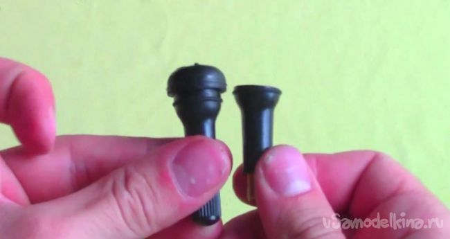 Далее берем сосок от бескамерной шины. Отрезаем верхнюю часть.