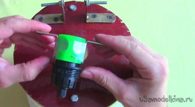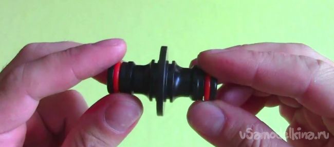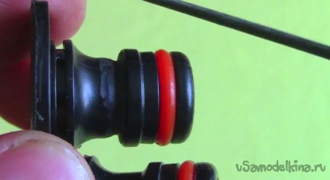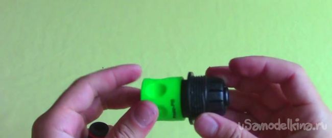 Теперь можно приступить к изготовлению спускового механизма. Для этого берем быстрый соединитель для садового шланга и переходник.